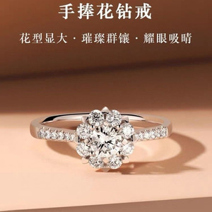 银佳银饰 足银990 微镶手捧花锆石戒指 时尚潮流 精品一件代发