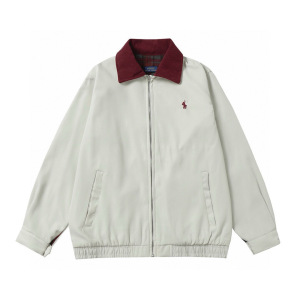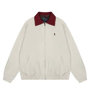 高版本拉夫红领翻领短外套美式撞色翻领刺绣夹克男女休闲显瘦上衣
