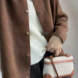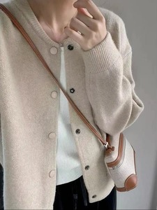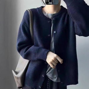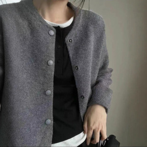 针织开衫女秋季2025年新款感穿搭上衣宽松灰色毛衣外套慵懒风韩系