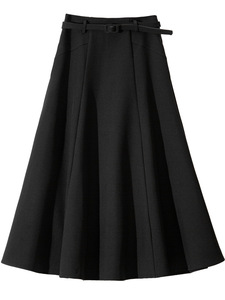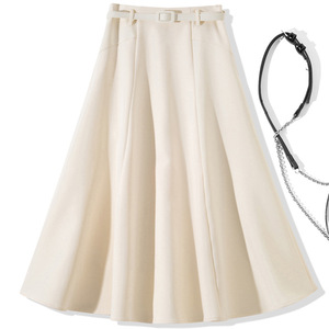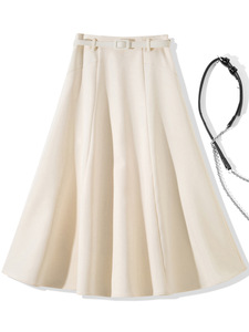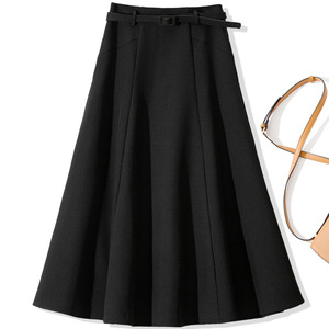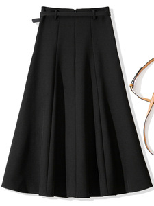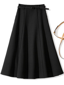 B2129 2025年秋冬女装新款时尚纯色大摆裙配腰带