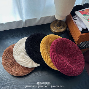 纯色净版灯芯绒贝雷帽女秋冬季百搭画家帽子大头围显脸小南瓜帽