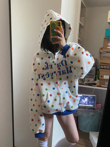美式高街彩虹波点字母刺绣连帽卫衣女秋季新款设计感小众开衫外套