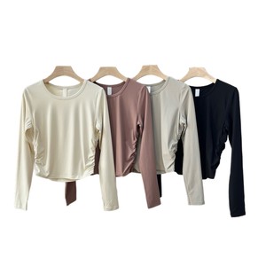 0911x8~25秋季新款户外运动修身显瘦瑜伽上衣女士圆领螺纹长袖T恤