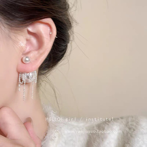 法式精致珍珠流苏多戴仿珍珠耳环轻奢高级感耳钉时尚气质耳饰百搭