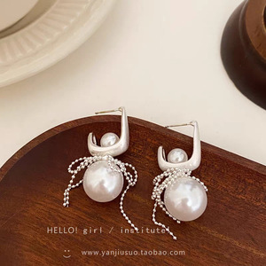 仿珍珠蝴蝶结耳环