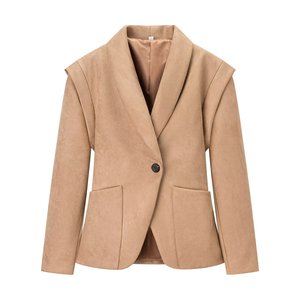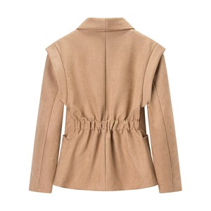JJ25春秋款欧美跨境秋季新款复古翻领麂皮绒收腰长袖夹克外套