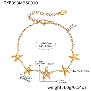 鑫艺鑫ins小众设计感不锈钢海星镶锆石手链项链戒指耳环套装饰品