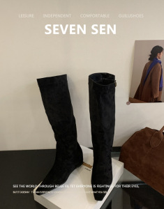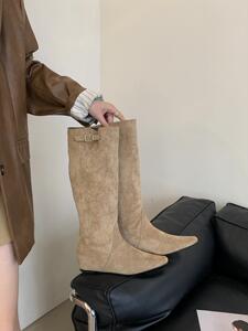 2025新款秋冬小方头内增高长筒靴瘦瘦靴不过膝时尚舒适骑士靴