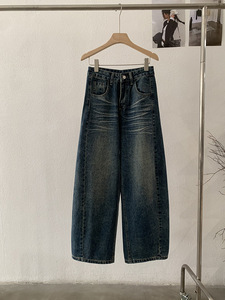 欧玛莱 复古高腰阔腿牛仔裤女秋季做旧宽松休闲直筒显瘦长裤 4902