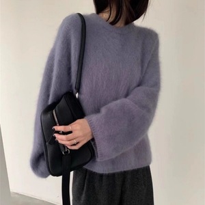 慵懒风仿水貂套头圆领毛衣女秋冬新款宽松长袖软糯跨境针织上衣女