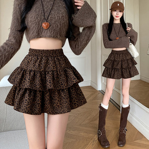 美式复古豹纹半身裙女秋冬季2025新款高腰a字小个子蓬蓬蛋糕短裙