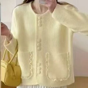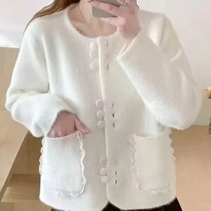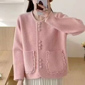 2025新款跨境小香风外套春季宽松休闲外搭开衫软糯仿貂绒时尚气质