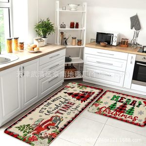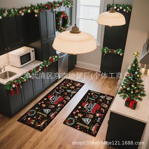 亚马逊跨境圣诞树卡车水晶绒厨房垫两件套防滑耐脏入户玄关地垫