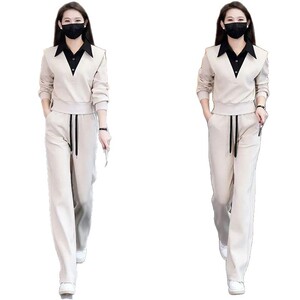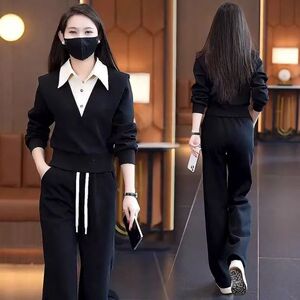 时尚休闲运动服套装女2025春秋新款设计感拼接卫衣阔腿裤两件套装