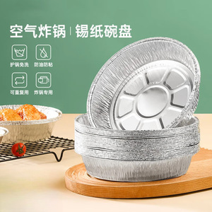 圆形锡纸盘空气炸锅纸加厚可以户外明火使用加大锡纸碗烧烤盘