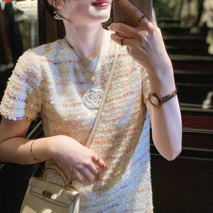 鱼兔子的兔子 小香风亮片连衣裙女2025夏季穿搭新款小个子a字裙子