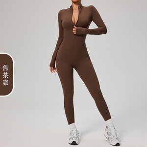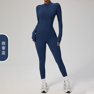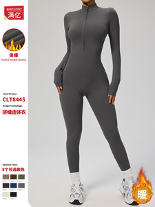 满亿欧美秋冬薄绒拉链长袖瑜伽连体服健身运动连体紧身衣8445
