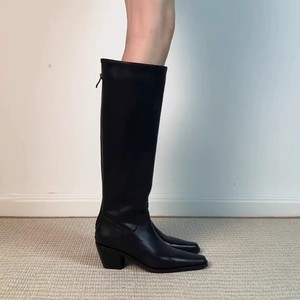 牛皮版时尚气质复古小方头高筒骑士靴秋冬新款粗跟6cm显瘦长靴子