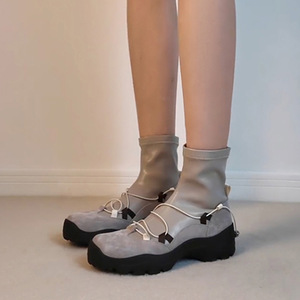 牛皮版~复古小众厚底圆头瘦瘦靴女时尚运动风真皮短靴马丁靴袜靴