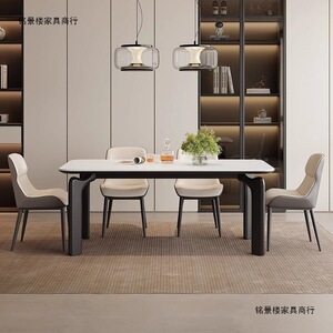 岩板餐桌餐桌椅组合大象家用小户型复古长方形现代简约饭桌桌子