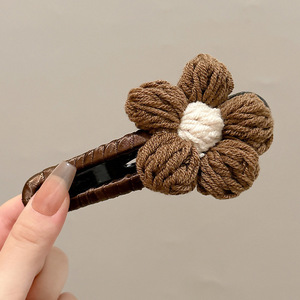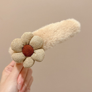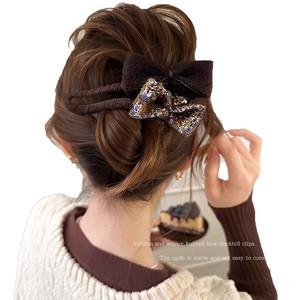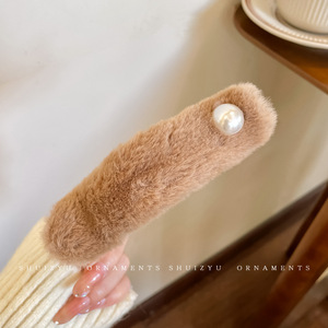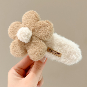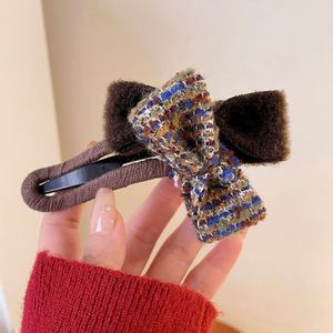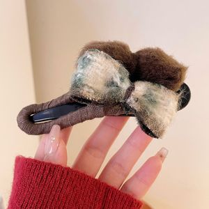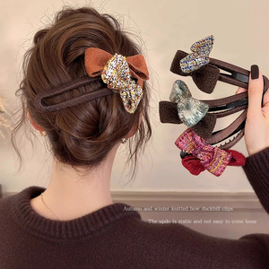 2025新款秋冬毛绒蝴蝶结鸭嘴夹后脑勺盘发一字发夹气质半扎发发卡