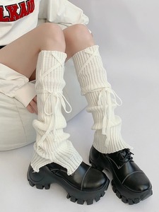 秋冬芭蕾风少女薄款绑带蝴蝶结堆堆针织纯色袜套韩系百搭开叉腿套