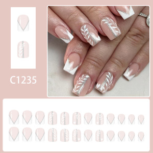 短款亮面方甲欧美跨境外贸秋冬新款白色斜法式闪粉落叶穿戴甲24片