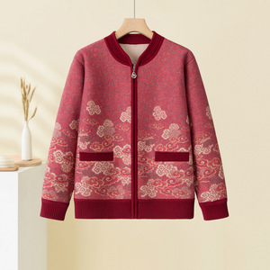 中老年人宽松女装60多岁妈妈春秋外套春装老太太针织开衫上衣加绒