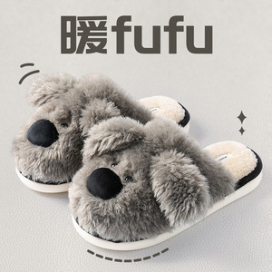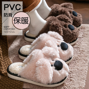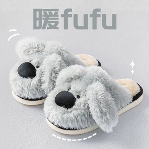 萌趣长耳朵狗棉拖鞋女2025年新款秋冬保暖居家室内情侣毛绒棉拖女