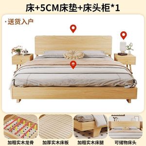 实木床加厚1.5m家用出租现代简约1.8m主卧双人床1.2m小户型单人床