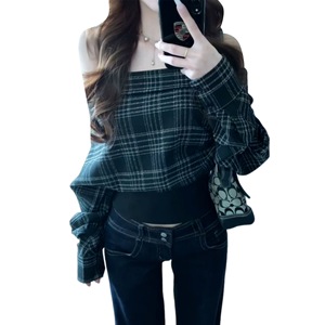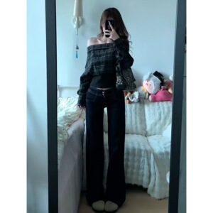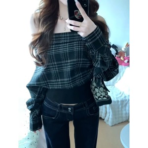 法式黑色一字肩长袖TT恤女早秋季2025新款小个子休闲气质收腰上衣