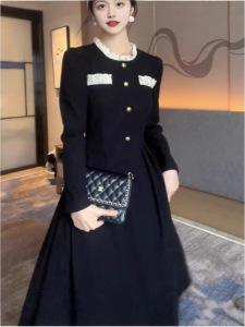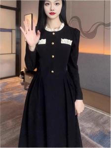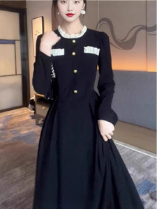法式赫本风别致黑色连衣裙女2025秋季新款气质修身显瘦内搭长裙子
