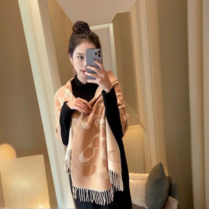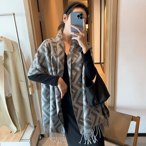正确版嵿货仿羊绒羊绒牌驴围巾黑灰两用奶茶色围巾秋冬披肩女加厚