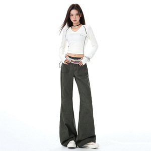 潮源美式复古低腰辣妹微喇叭裤修身显瘦休闲牛仔裤秋季新款长裤子