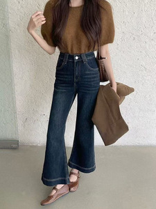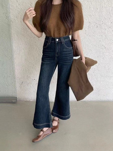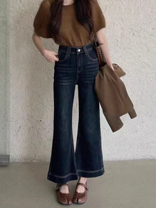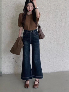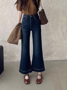 复古高腰显瘦微喇牛仔裤女秋季做旧修身时尚百搭小个子喇叭九分裤
