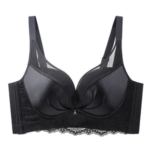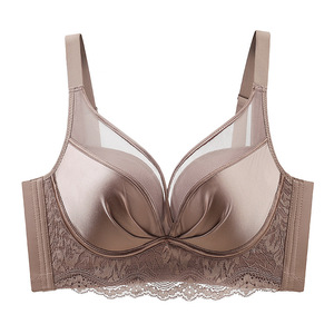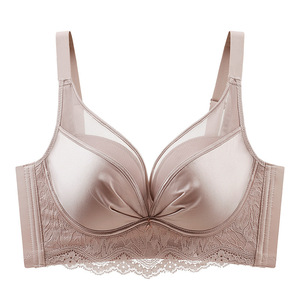 无痕缎面网纱内衣女士中厚小胸显大聚拢收副乳防下垂无钢圈文胸罩