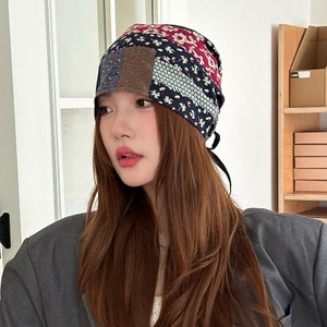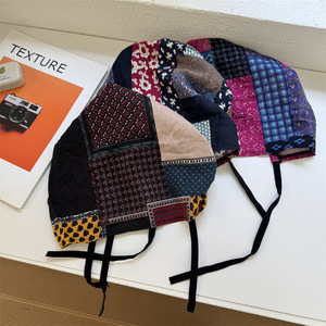 绑带包头堆堆帽女ins百搭显脸小彩色头巾复古冷帽大头围宽松帽子