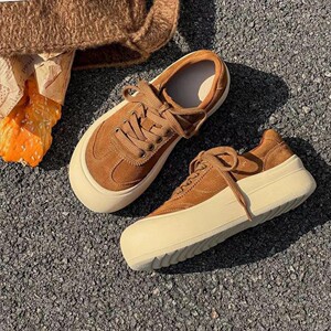 真皮厚底德训鞋女2025秋季新款百搭户外登山慢跑运动阿甘鞋
