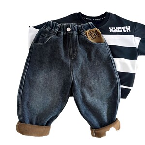 童装童裤男童加绒牛仔裤儿童冬季一体绒裤子宝宝小童秋冬加厚保暖