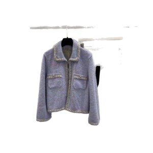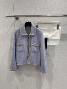 南油直供25秋冬时尚香芋紫羊毛混纺柔软保暖外套经典钻扣修身上衣