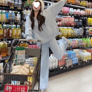 黄色宽松慵懒风时尚针织套装女秋冬新款韩版洋气休闲阔腿裤两件套