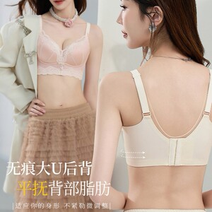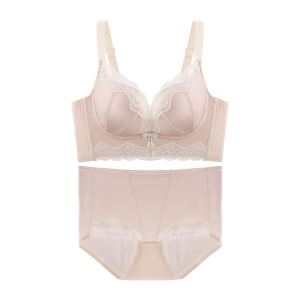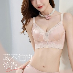 B11轻奢优雅缎面拼接蕾丝聚拢内衣7A抗菌立体托胸防下垂文胸