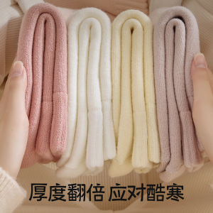 袜子女秋冬季中筒加绒毛巾袜加厚款月子袜保暖毛绒长筒冬天毛圈袜
