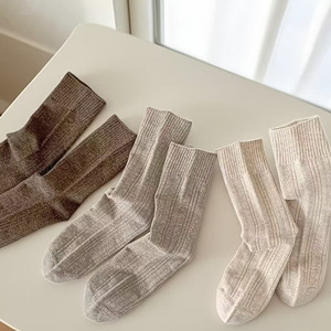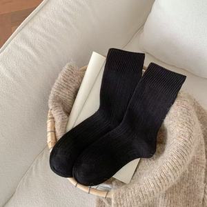 新品复古纯色袜子女中筒袜简约基础款百搭高罗口防滑不掉跟堆堆袜
