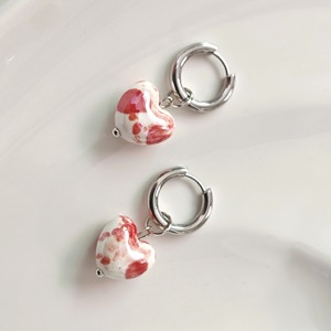 欧美跨境饰品 万圣节红色印记陶瓷爱心耳环女 个性创意哥特风耳饰