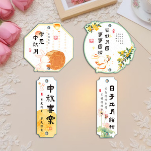 可爱中秋节异形吊牌定 制月饼蛋黄酥糕点装饰花店伴手礼卡片印刷