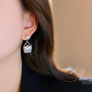 珍珠镶钻提篮耳坠女2025新款爆款耳钉高级感轻奢耳环独特漂亮耳饰