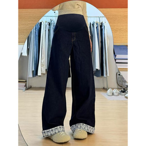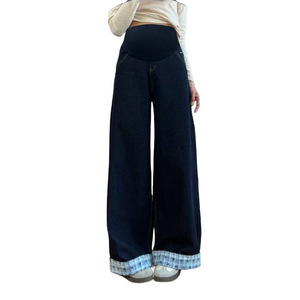 孕妇装秋季新款蓝色拼接脚口孕妇牛仔阔腿宽松裤外穿新款休闲裤