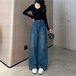cici牛仔服饰推荐7632 W高街美式直筒工装牛仔裤女潮ins显瘦百搭