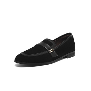 超美蓝色羊反绒乐福鞋2025秋季新款舒适圆头软底2cm粗低跟小皮鞋